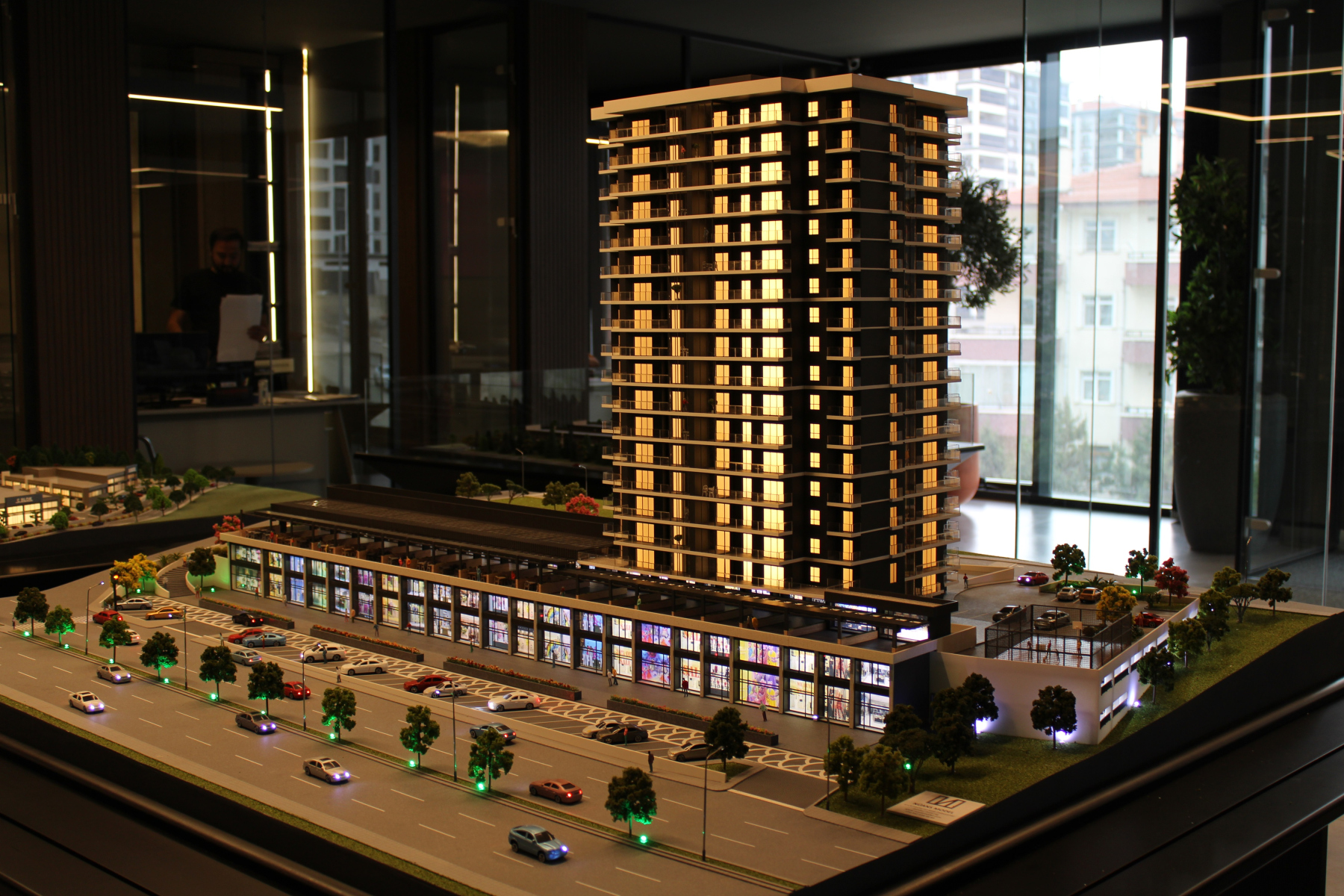 Projenin Adı: KOCALAR BULVAR PLUS Firma: KOCALAR GRUP Ölçek: 1/75 Ankara’nın en büyük inşaat firmalarından Kocalar Grup tarafından geliştirilen ,konut ve avm konseptinde tasarlanan Kocalar bulvar plus projesinin maket çalışması firmamız tarafından gerçekleştirildi. Tüm yapı kompleksini doğru ve şık şekilde tasvir etmek için maket çalışması, iç hacimler görünecek şekilde, renk, doku ve peyzaj detayları özenle işlenerek ,bilgisayar kontrollü (otomasyonlu) aydınlatma ile üretilmiştir. Her daire aydınlatmasını ayrı ayrı kullanabilme ,satılan daireleri işaretleme gibi özellikler sayesinde çok sayıda dairenin satış yapıldığı bu tarzda büyük projelerde kolaylık sağlamaktadır.Maket üzerinde bulunan peyzaj alanları , projenin çevre ile uyumunu,estetik görünümünü yansıtmak için özel üretim çim ve ağaç detayları ile yeterli sayıda çeşitli renkler kullanılarak özenle işlenmiştir. Profesyonel maket yapımında satış gücünü artırmak, sadece iyi maket yapmakla sınırlı kalmaz. Müşteriyle kurulan bağ, sunum kalitesi, teknolojik altyapı, doğru fiyatlandırma ve profesyonel hizmet anlayışı gibi faktörlerin uyumu ile sağlanabilir. İşimize gösterdiğimiz özen, sadece bir satışı değil,bize uzun vadeli iş birliklerini de beraberinde getirmektedir.